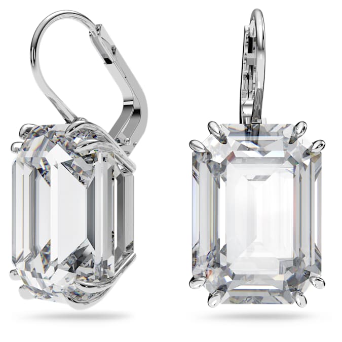 These elegant earrings will make a timeless addition to your everyday wardrobe. Designed with octagon cut crystals in a versatile white hue, this pair is finished with a sleek rhodium plated setting. Style yours with other pieces from the Millenia family for maximum impact. These earrings are part of the Millenia family, designed for Collection III.