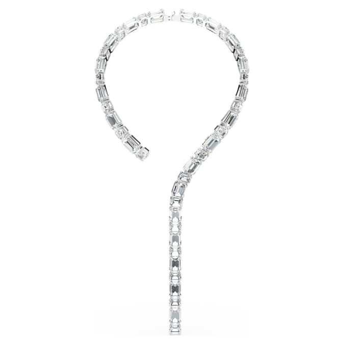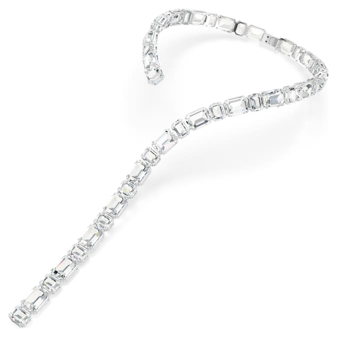 Embrace the sheer beauty of crystals in this light-filled Millenia necklace. The rhodium plated design wraps around the neck with a circle of octagon-cut clear crystals, and then dips at the middle with a long and luminous strand. Wear this necklace every day to instantly elevate any outfit with joy.