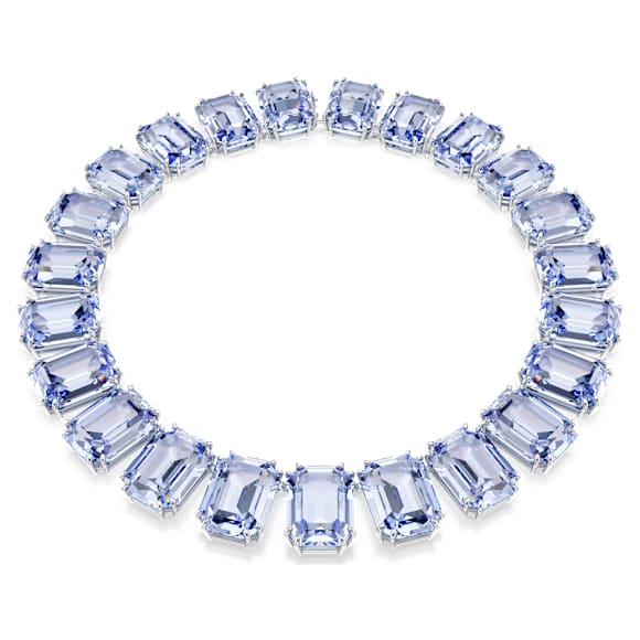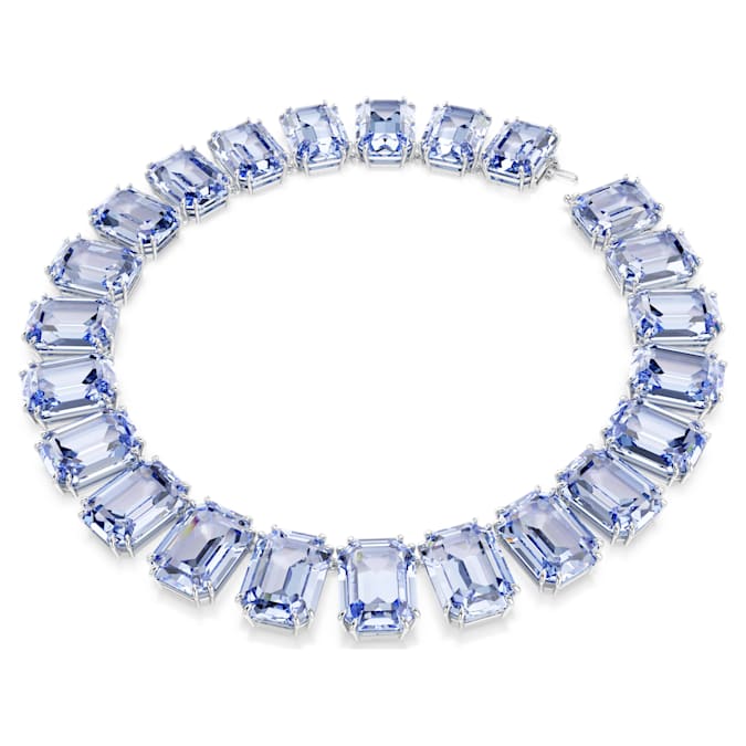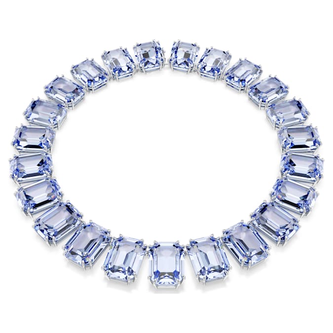 Discover your new wardrobe essential with this distinctive necklace, designed with a row of blue octagon-cut crystals, cradled in rhodium plated prong settings. Finished with a hidden closure for a seamless effect, your everyday style will take on a new life once you add this necklace as a vivid finishing touch.