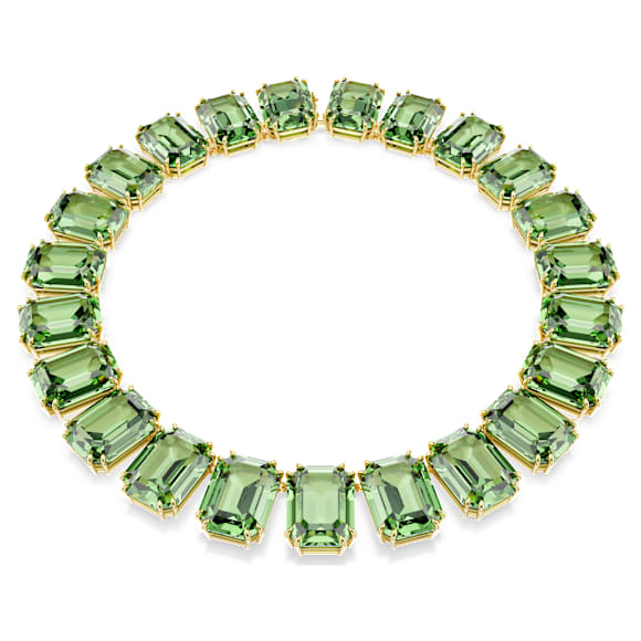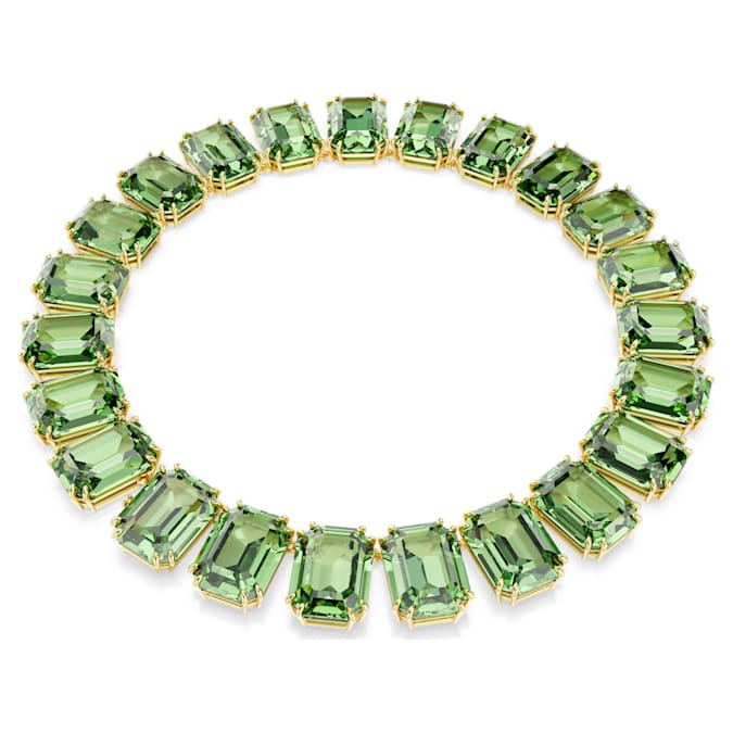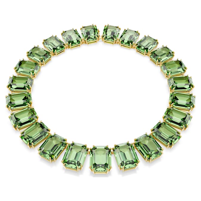 Discover your new wardrobe essential with this distinctive necklace, designed with a row of green Swarovski ReCreated™ crystals, cradled in gold-tone plated prong settings. Finished with a hidden closure for a seamless effect, your everyday style will take on a new life once you add this necklace as a vivid finishing touch.
