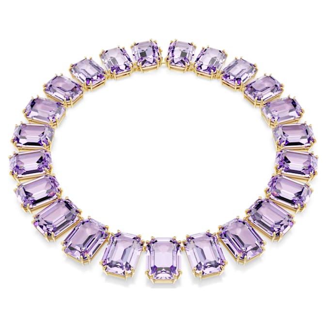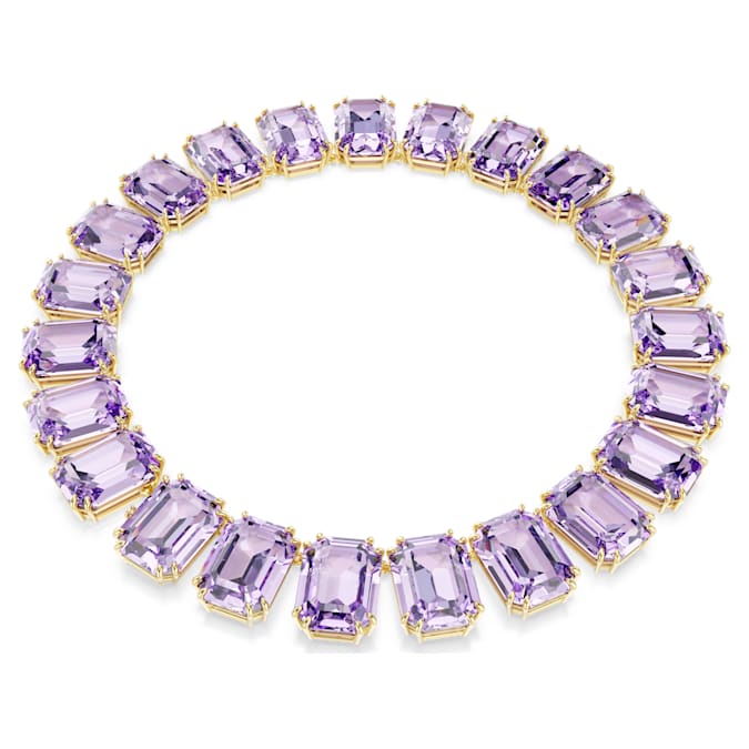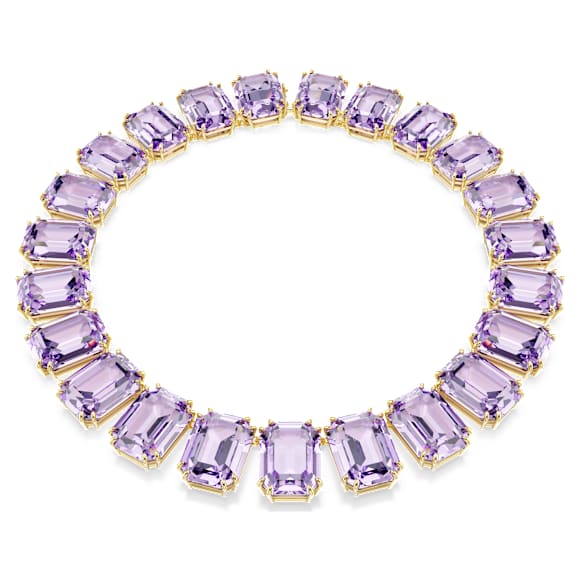 Take on a joyful glow in this pop of vivid Millenia color. The all-round necklace is rhodium plated and brought to life by an energizing array of octagon-cut crystals in a purple shade. At the back, a new closure in cobalt chrome provides both adjustability and style. For days when you just feel like shining, this necklace is the answer every time.