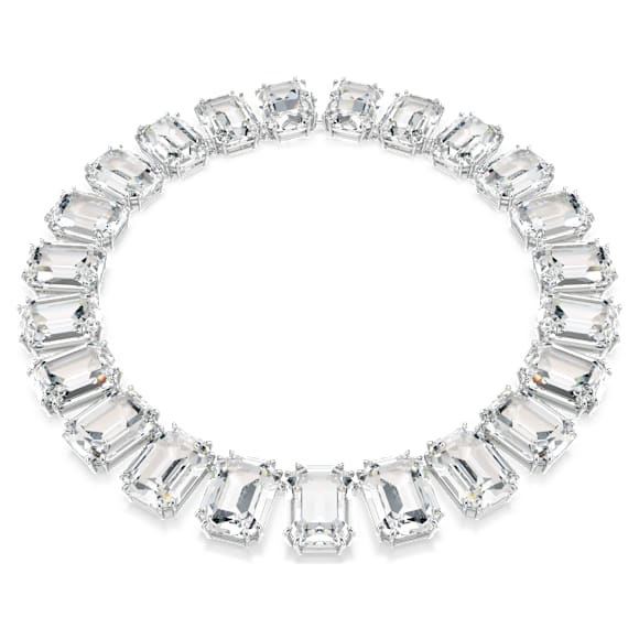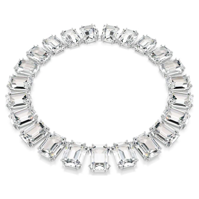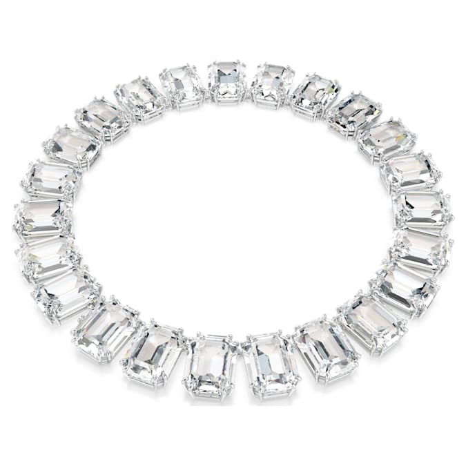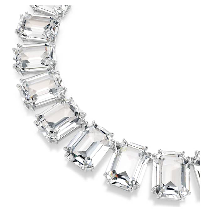 Discover your new wardrobe essential with this distinctive necklace, designed with a row of clear octagon-cut crystals, cradled in rhodium plated prong settings. Finished with a hidden closure for a seamless effect, your everyday style will take on a new life once you add this necklace as a luminous finishing touch.