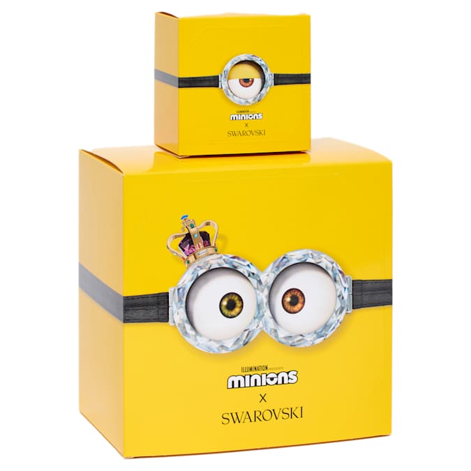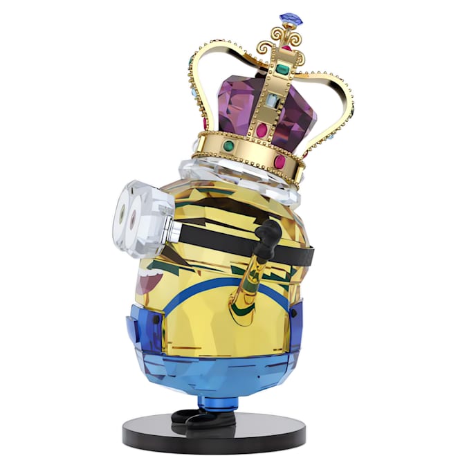 Dedicating their lives to the world’s most villainous boss, the sweet yet subversive Minions always find themselves in comical situations. Prepare to be charmed by these mischievous henchmen. This royal creation celebrates King Bob and encapsulates the excitement of his accidental coronation. Intricately crafted with 1,026 precision-cut facets, the design playfully captures Bob’s delighted expression and endearing pose during the crowning ceremony. Eye-catching details include his gold-tone metal crown with a bright purple crystal, and his chrome plated goggles with black artificial leather. Gift this King Bob figurine to an avid movie fan, or collect Swarovski’s entire Minion set. Decoration object. Not a toy. Not suitable for children under 15.