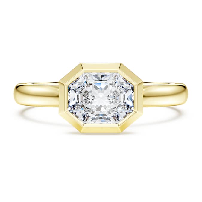 Conveying the signature octagon shape of Swarovski, this solitaire ring glows with sophistication. The 14K yellow gold band features a single laboratory grown diamond, totaling 1.00 carat, placed in a faceted bezel setting. Precision cut for maximum radiance, this ring is a wonderful choice for self-styling or an engagement. This jewelry is IGI (International Gemological Institute) certified and is part of the Octagon collection.