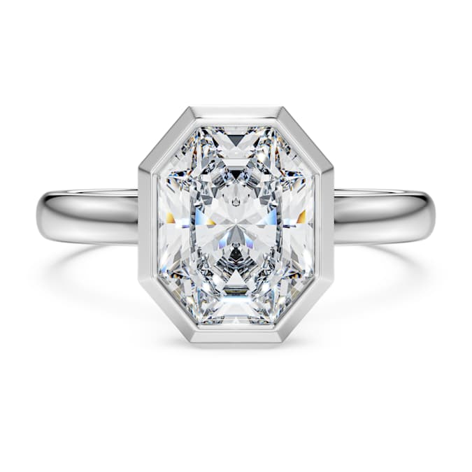 Conveying the signature octagon shape of Swarovski, this solitaire ring glows with sophistication. The 14K white gold band features a single laboratory grown diamond, totaling 2.0 carat, placed in a faceted bezel setting. Precision cut for maximum radiance, this ring is a wonderful choice for an engagement. This jewelry is IGI (International Gemological Institute) certified and is part of the Octagon collection.