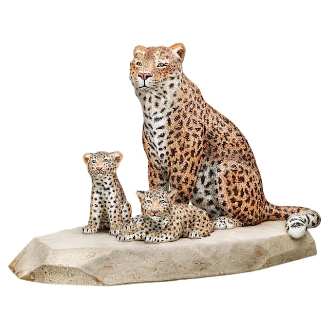 Reka offers an extraordinary interpretation of a family of Amur Leopards, with a loving and protective mother watching over her two cubs. This powerful and endangered species is found in the forests of eastern Russia and China. Only crafted on demand, this unique statement piece sparkles luxuriously with 44’000 hand-set crystals in nine different colors to evoke the animal’s natural fur pattern. Each piece is finished with an elegant marble base and takes Swarovski artisans 384 hours to complete. Limited to just 300 editions worldwide, Reka is delivered in a premium blue suitcase with a certificate of authenticity. The shipping procedure includes insurance and a delivery notice. Find out more about this procedure under Online Shop Assistant – Order Process. Decoration object. Not a toy. Not suitable for children under 15.