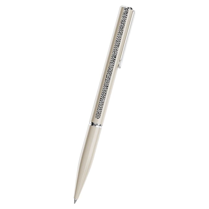 Combining sleek elegance with modern minimalism, this Shimmer ballpoint pen is the most sophisticated way to express your creativity. On each side of the lacquered beige barrel, the strips of ultra-fine Crystal Rocks are designed to reflect the light with every movement. For additional precision and functionality, the design also includes a chrome plated clip and a classic twist mechanism. The Shimmer ballpoint pen is the perfect gift for a birthday or anniversary, or any occasion when you wish to show your appreciation. Blue and black ink refills are available to purchase in Swarovski stores.