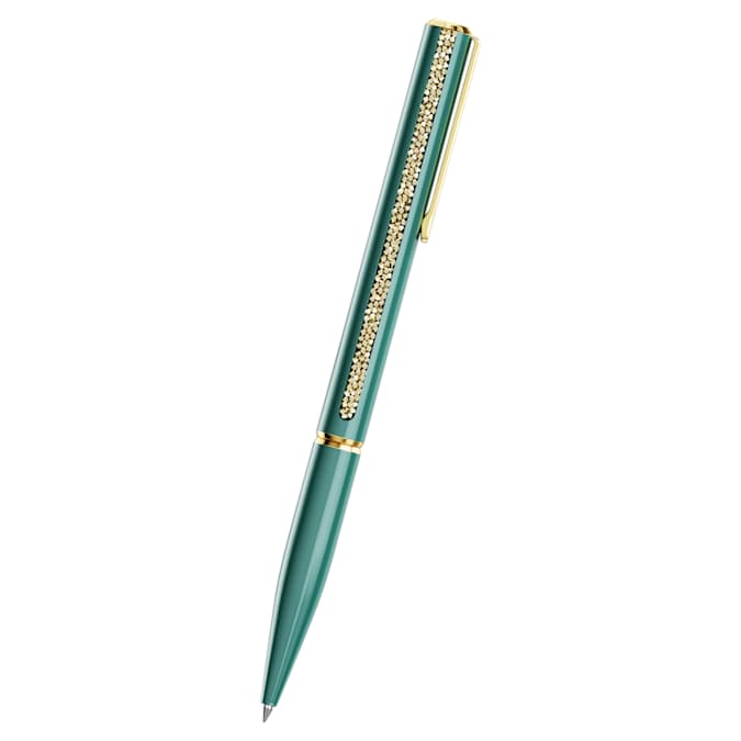 Combining sleek elegance with modern minimalism, this Shimmer ballpoint pen is the most sophisticated way to express your creativity. On each side of the lacquered green barrel, the strips of ultra-fine Crystal Rocks are designed to reflect the light with every movement. For additional precision and functionality, the design also includes a gold-tone finished clip and a classic twist mechanism. The Shimmer ballpoint pen is the perfect gift for a birthday or anniversary, or any occasion when you wish to show your appreciation. Blue and black ink refills are available to purchase in Swarovski stores.