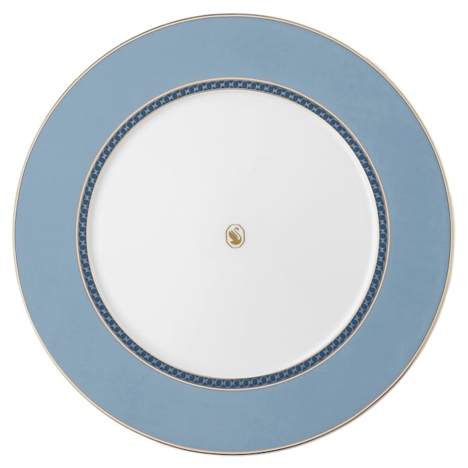 This porcelain dinner plate is sophisticated yet playful. Its vibrant blue color is complemented with a subtle octagon motif, while our swan logo sits gracefully at the center. Set alongside Signum pieces in yellow, pink, and green for an eclectic tablescape design. This plate was created in partnership with porcelain brand Rosenthal. It is dishwasher safe, but not suitable for use in the microwave.