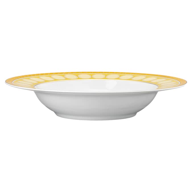 Make your first course memorable with this stylish soup plate. Crafted from porcelain, it features a yellow geometric pattern in Swarovski’s signature octagon and our swan logo sitting gracefully at the center. This soup plate was created in partnership with porcelain brand Rosenthal. It is dishwasher safe, but not suitable for use in the microwave.