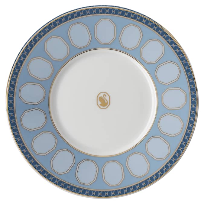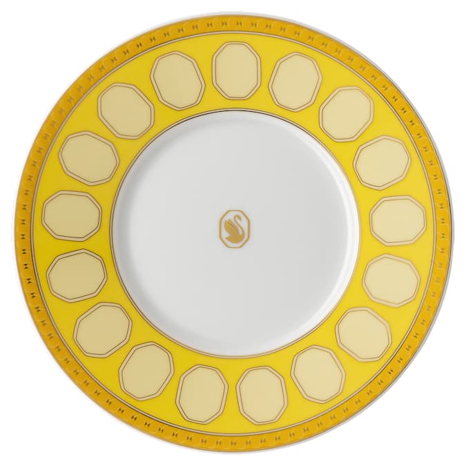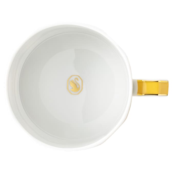 Bring playful sophistication to teatime with this colorful set of cups and saucers in blue and yellow. The bright geometric motifs feature Swarovski’s signature octagon, complemented by an artful octagonal handle and the iconic swan logo in gold tone. Style yours with the matching teapot in your favorite color. This teacup set is part of an exclusive collaboration with porcelain brand Rosenthal. It is dishwasher safe, however usage in the microwave is not recommended.