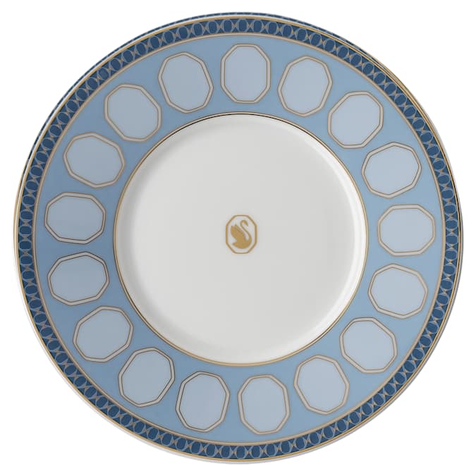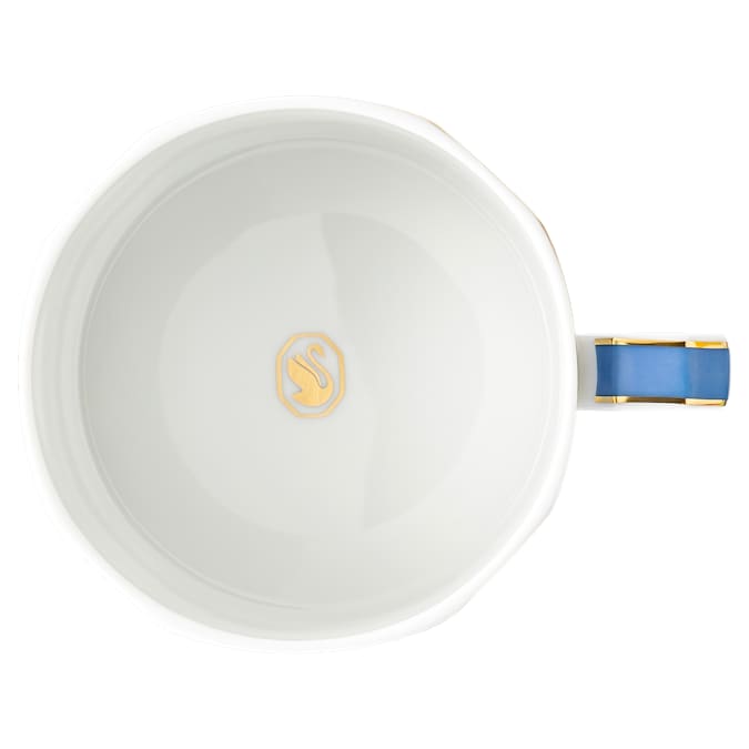 Bring playful sophistication to teatime with this elegant blue cup and saucer set from the Signum family. The bright geometric motif features Swarovski’s signature octagon, complemented by an artful octagonal handle and our iconic swan logo in golden tone. Style yours with the matching teapot in the same color. This teacup set is part of a collaboration with porcelain brand Rosenthal. It is dishwasher safe.