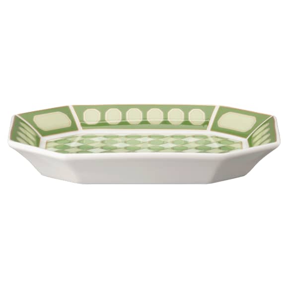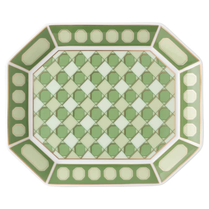 Elevate your tablescape with this small Signum tray. Crafted from porcelain, the tray reflects Swarovski’s signature octagon shape with a matching geometric pattern in green. It’s a sensational way to bring color and elegance to any occasion. This tray was created in partnership with porcelain brand Rosenthal. Do not use in the dishwasher or microwave.