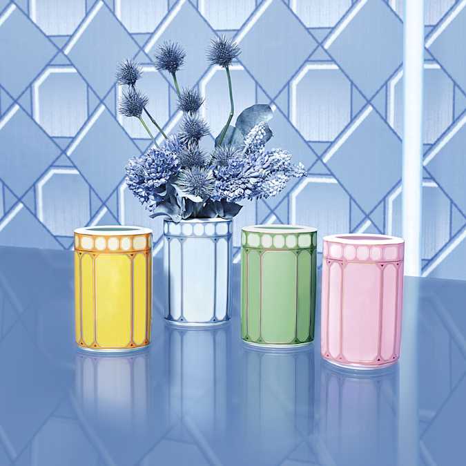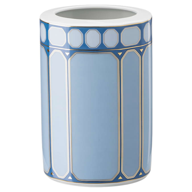 Bring vibrancy to any room with this mesmerizing vase. Inspired by the Wiener Werkstätte art scene, the geometric pattern features Swarovski’s signature octagon in color pop blue. Adorn your own home or give the gift of playful sophistication to a loved one. This vase is part of an exclusive collaboration with porcelain brand Rosenthal. It is dishwasher safe, however usage in the microwave is not recommended.