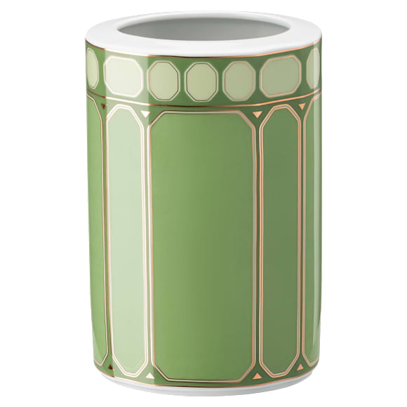 Bring vibrancy to any room with this mesmerizing vase. Inspired by the Wiener Werkstätte art scene, the geometric pattern features Swarovski’s signature octagon in vibrant green. Adorn your own home or give the gift of playful sophistication to a loved one. This vase is part of an exclusive collaboration with porcelain brand Rosenthal. It is dishwasher safe, however usage in the microwave is not recommended.