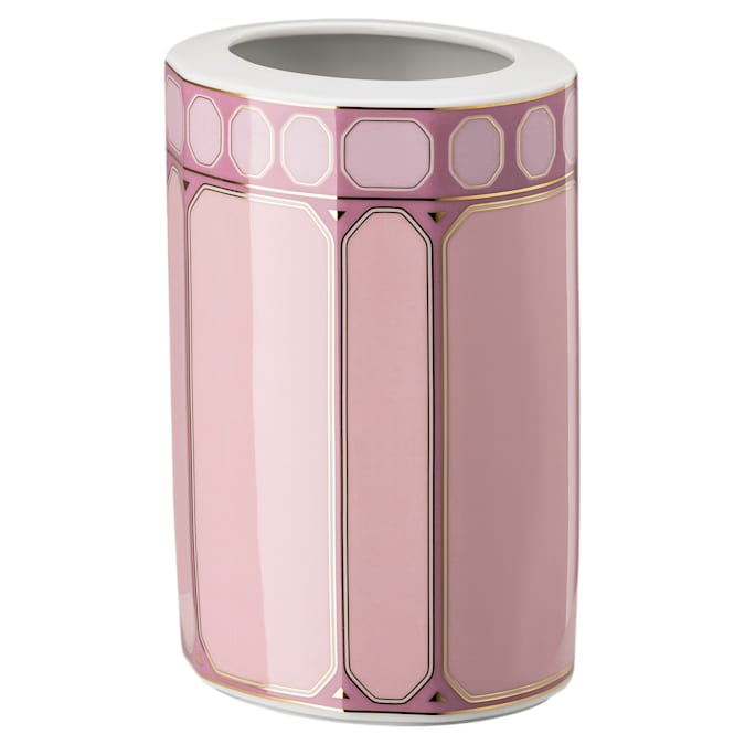 Bring vibrancy to any room with this mesmerizing vase. Inspired by the Wiener Werkstätte art scene, the geometric pattern features Swarovski’s signature octagon in joyful pink. Adorn your own home or give the gift of playful sophistication to a loved one. This vase is part of an exclusive collaboration with porcelain brand Rosenthal. It is dishwasher safe, however usage in the microwave is not recommended.