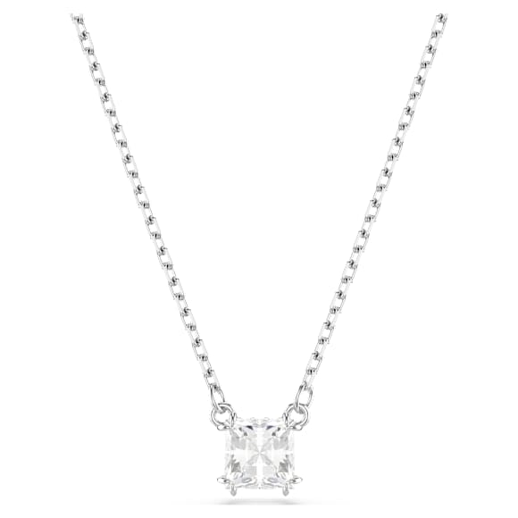 The timeless elegance of the iconic Stilla family shines through in this beautiful pendant. The rhodium plated design features a square-cut Swarovski Zirconia in a refined double prong setting, while the elongated chain is completed with a lobster closure. This multifaceted piece would make a mesmerizing gift for someone special.