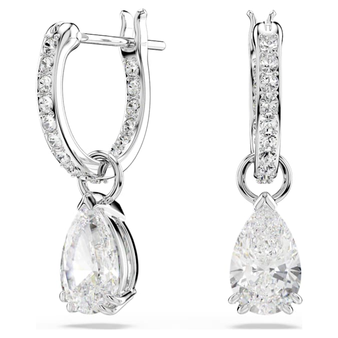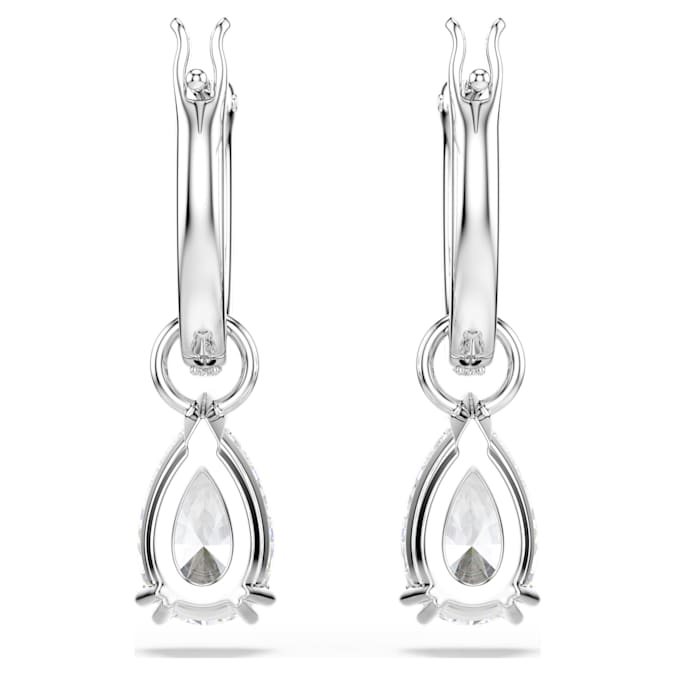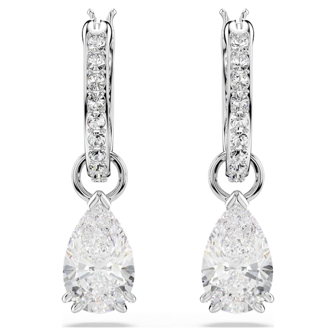 Designed to catch the light at all angles, these exquisite earrings are destined to become your new favorite. Clear pear-cut stones are suspended from rhodium-plated hoops embellished with dazzling pavé. Wear them with your hair up alongside other pieces from the Stilla family.