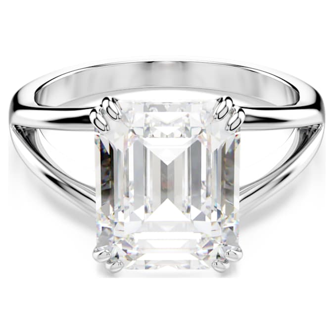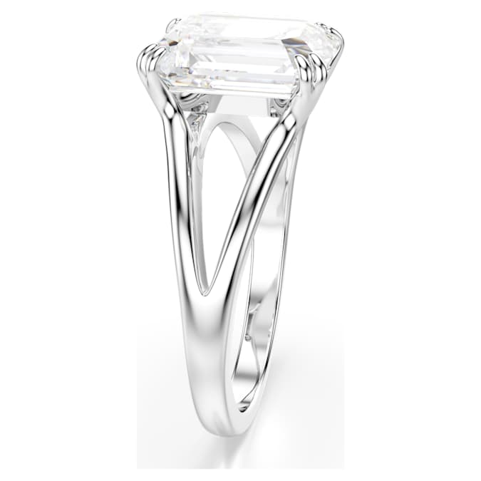 Dial up the glamour with this radiant cocktail ring. The silver-tone finish design features a split band with an octagon-cut Swarovski Zirconia at the center, held in place with a refined double prong setting. A showstopping piece that shimmers brilliantly.