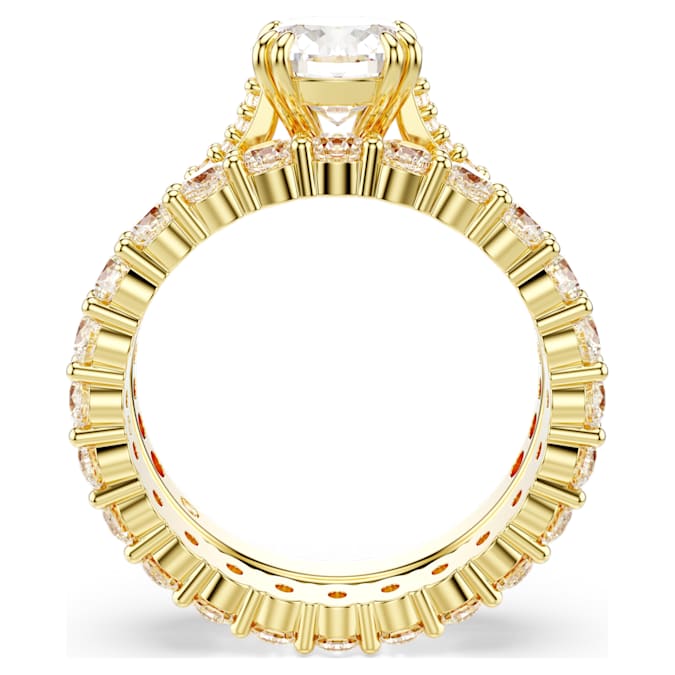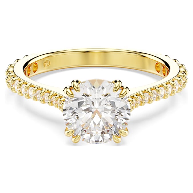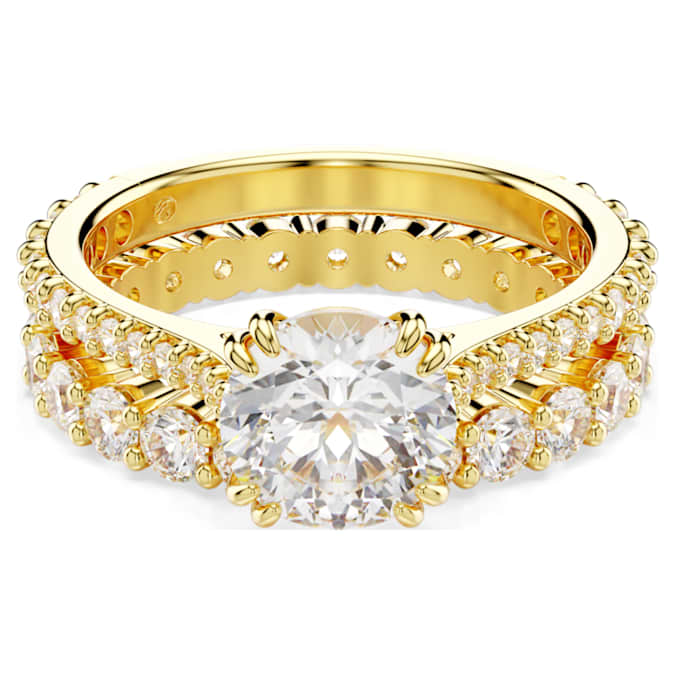 Reflecting the beauty of the cosmos, this spectacular jewelry inhabits its own light-filled universe. The gold-tone plated design combines a band ring adorned in pavé with a solitaire ring, also featuring pavé, with a large Swarovski Zirconia at the center. A radiant gift that beautifully captures Swarovski’s signature savoir-faire.