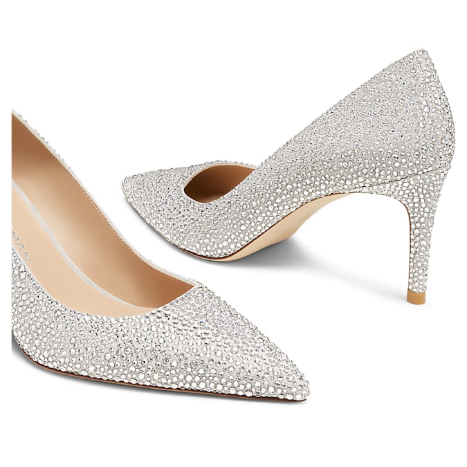 This limited-edition STUART POWER SHINE pump, created in collaboration with the Swarovski Creators Lab, delivers a high-shine, high-glam take on the new icon, the STUART POWER 75 pump. Meticulously crafted by expert artisans in Spain, each pair is adorned with over 6,000 clear Swarovski pavé crystals. The silhouette features a modernized construction for maximum style and comfort, including a reworked 75mm stiletto heel set on a subtle angle for extra support. Make every step striking in this dazzling pump.