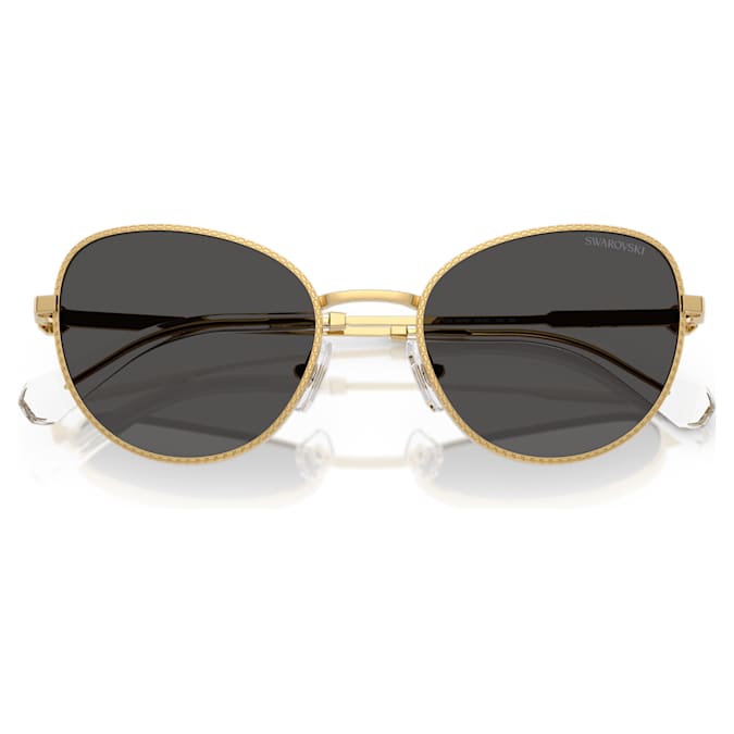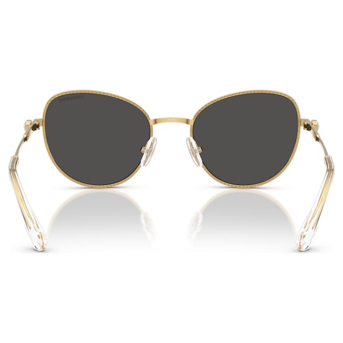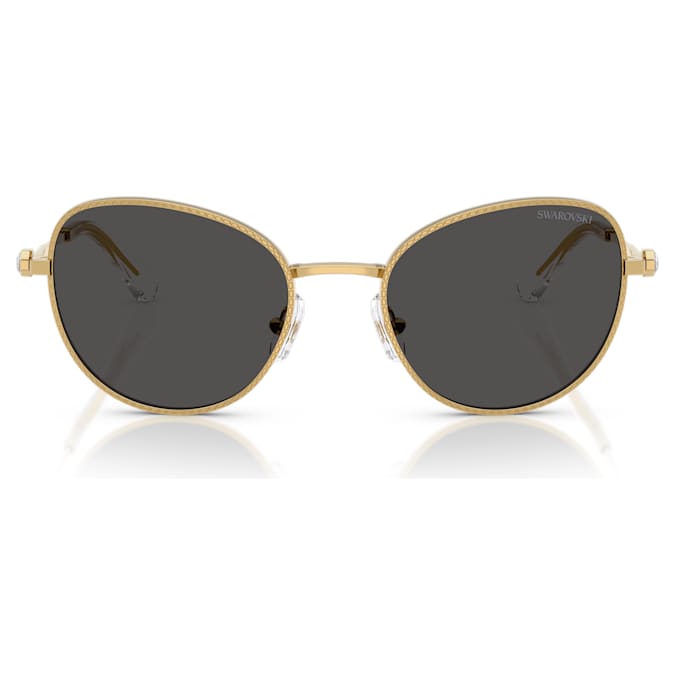 Crafted with luxurious gold-tone metal, these oversized Swarovski sunglasses will infuse your style with pure radiance. The cat-eye shaped frames are slim and classic, and feature octagonal engravings on the front and temples, in celebration of Swarovski’s emblematic brand shape. A small octagon-shaped crystal is also elegantly set on each temple for light-catching joy. Inspired by the Millenia family, this is a perfect pair for wearing alongside matching jewelry.
