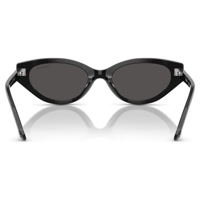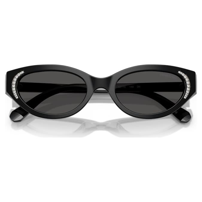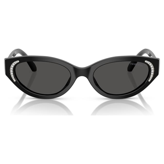 Light-filled luxury permeates this striking pair of sunglasses. Inspired by the Sublima family, the oval frames with a cat-eye edge are crafted from black acetate with matching dark gray lenses. A distinctive sprinkling of clear crystals radiates along the front and on each temple. This flowing effect is elegant yet extravagant, using a gradient of different sizes for added beauty. Choose this pair to instantly elevate your everyday style.