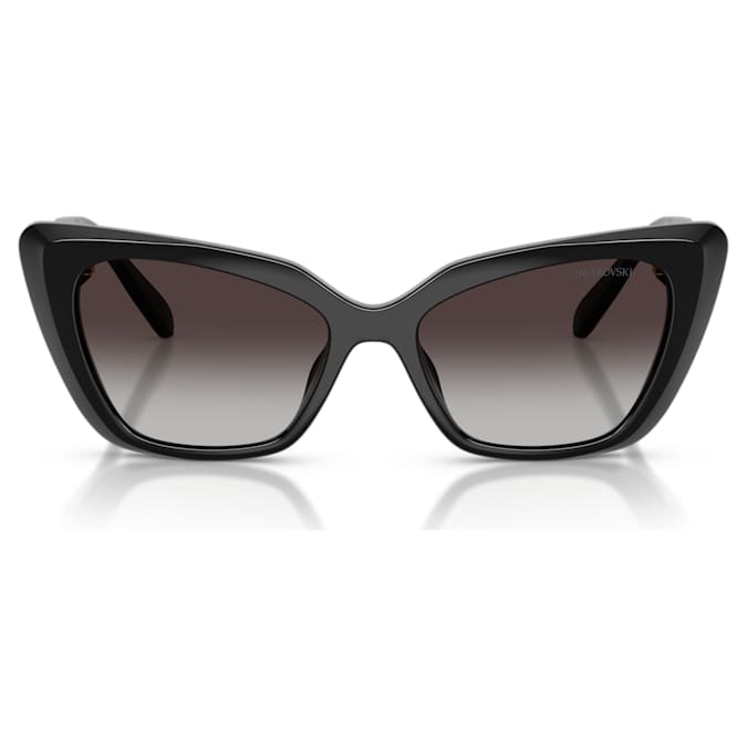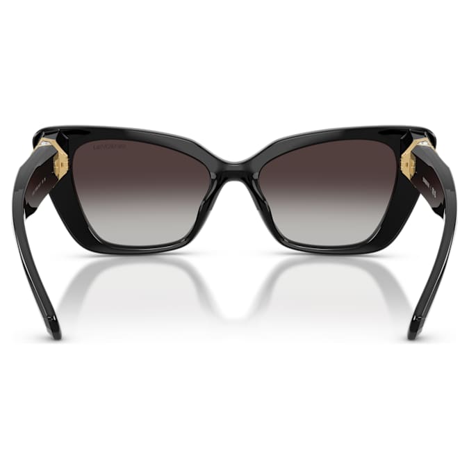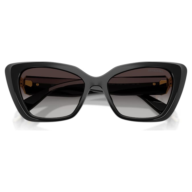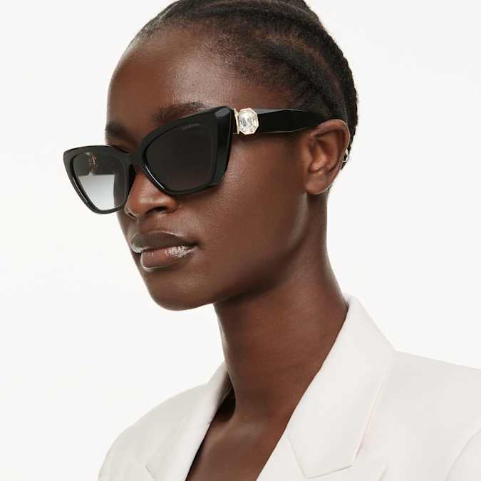 This expressive pair of sunglasses combines innovation with signature Swarovski style. Inspired by the iconic Millenia jewelry family, the shiny black frames feature an exclusive hinge on each side, crafted with two clear octagonal crystals. The dark gray lenses are then presented in a dramatic cat-eye shape for ultra-modern glamour.
