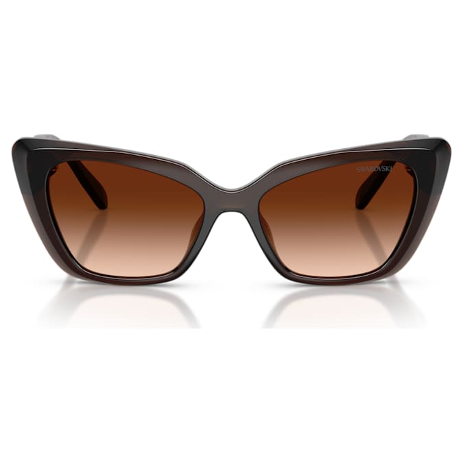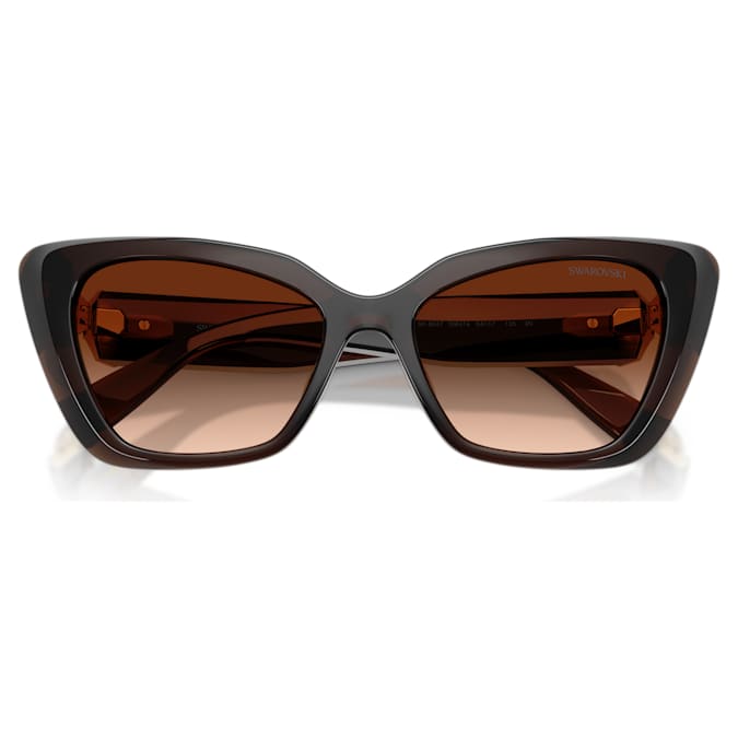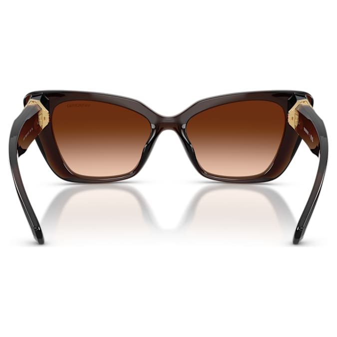 This expressive pair of sunglasses combines innovation with signature Swarovski style. Inspired by the iconic Millenia jewelry family, the transparent brown frames feature an exclusive hinge on each side, crafted with two Golden Shadow crystals in an octagon shape. The brown lenses are then presented in a dramatic cat-eye shape for ultra-modern glamour.