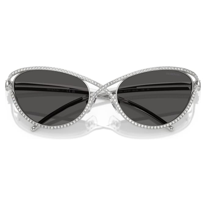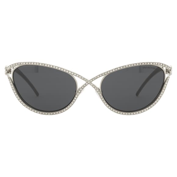 Inspired by Swarovski’s luxurious Hyperbola jewelry, these hypnotic sunglasses are made with shape and radiance in mind. The bicolor frames are crafted from silver- and gold-tone metal, with a silhouette that forms an elegant infinity symbol. Along with dark gray lenses, there is a single crystal placed on each of the hidden hinges, while the temples are vividly adorned with smaller clear crystals. Combine with your favorite pieces of matching Hyperbola jewelry and prepare to shine bright all day long.