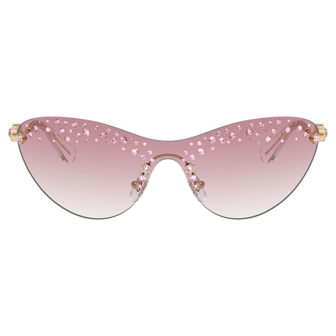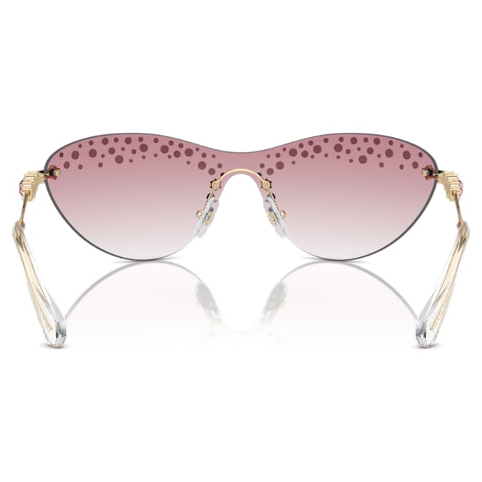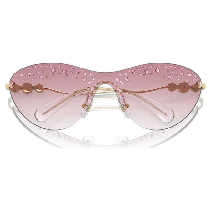 Reflecting Swarovski’s Constella family, these glittering sunglasses are inspired by the wonder of the night sky. The mask design features pink gradient lenses that are enriched with a galaxy of round pink crystals. The gold-tone frames also feature a trio of pink crystals on each side, along with elegantly curved temples. A perfect way to let your personal style shine.