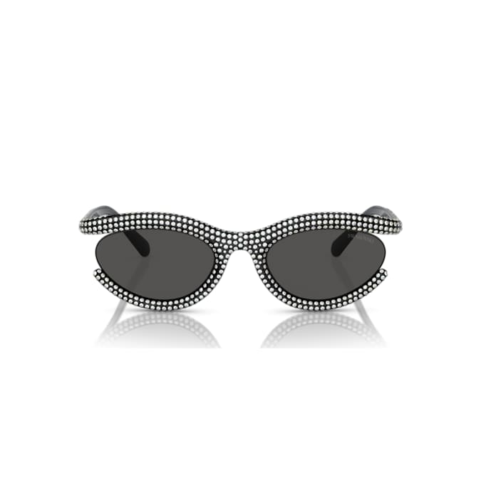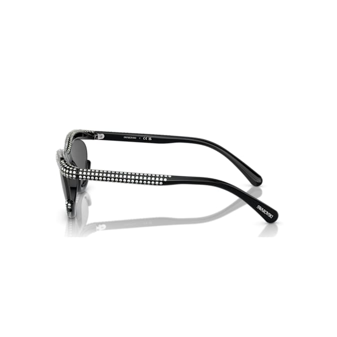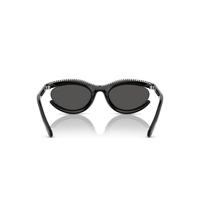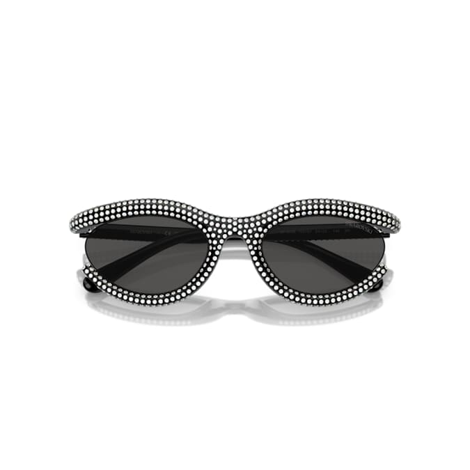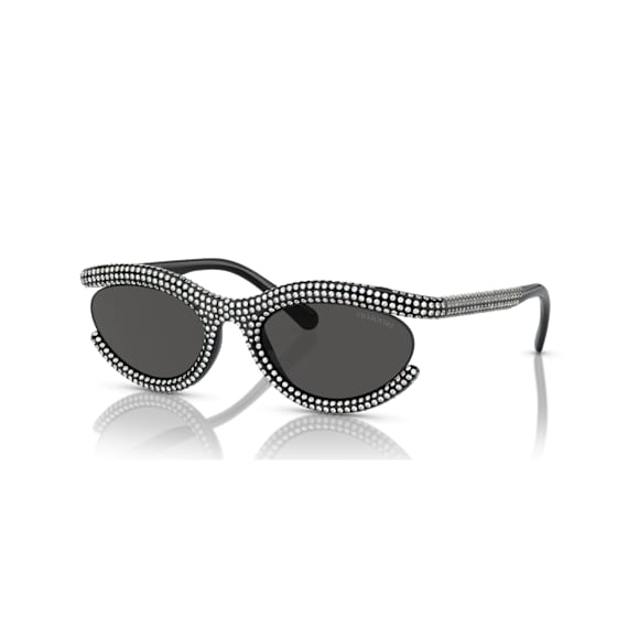 Catching the light wherever you walk, these dazzling sunglasses are a celebration of Swarovski’s savoir-faire. The innovative frames feature a black tubular design encrusted with a pavé of clear crystals. With their open style and black lenses, this pair was made for joyful extravagance.