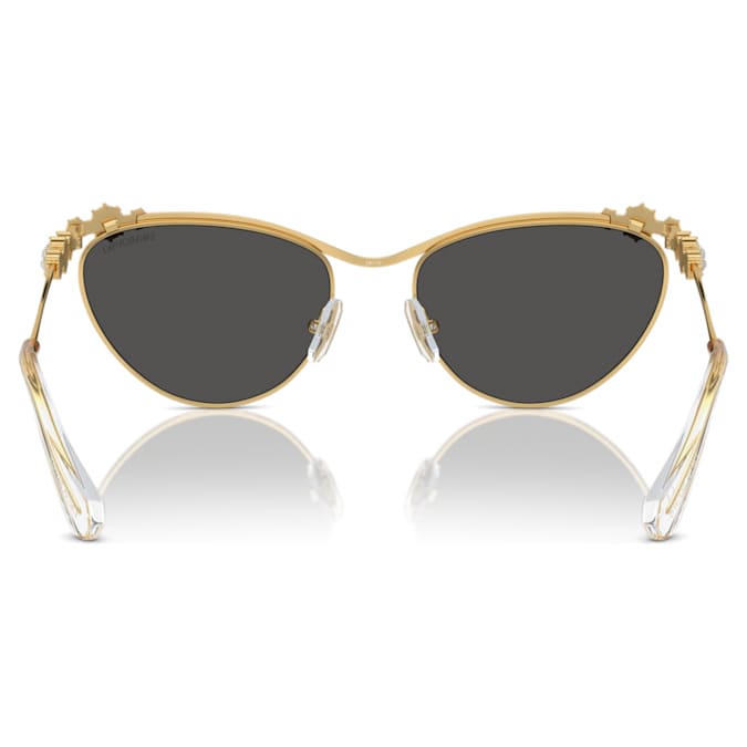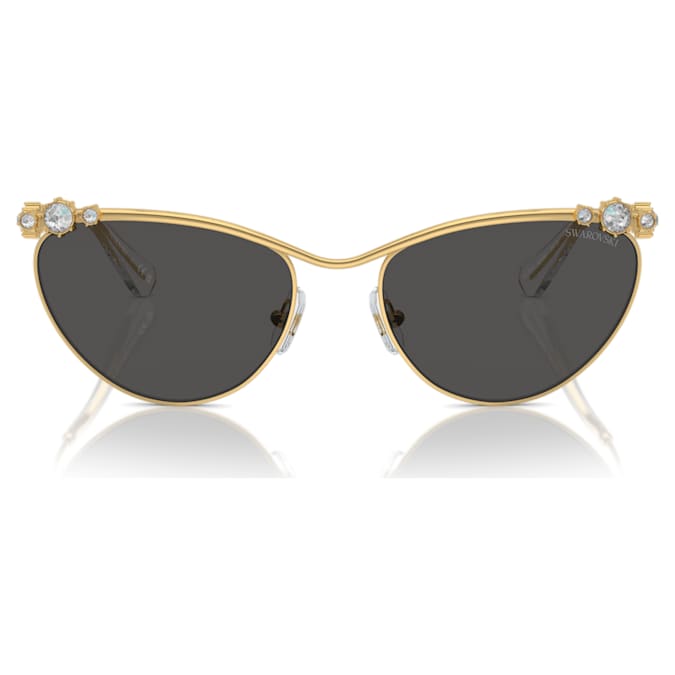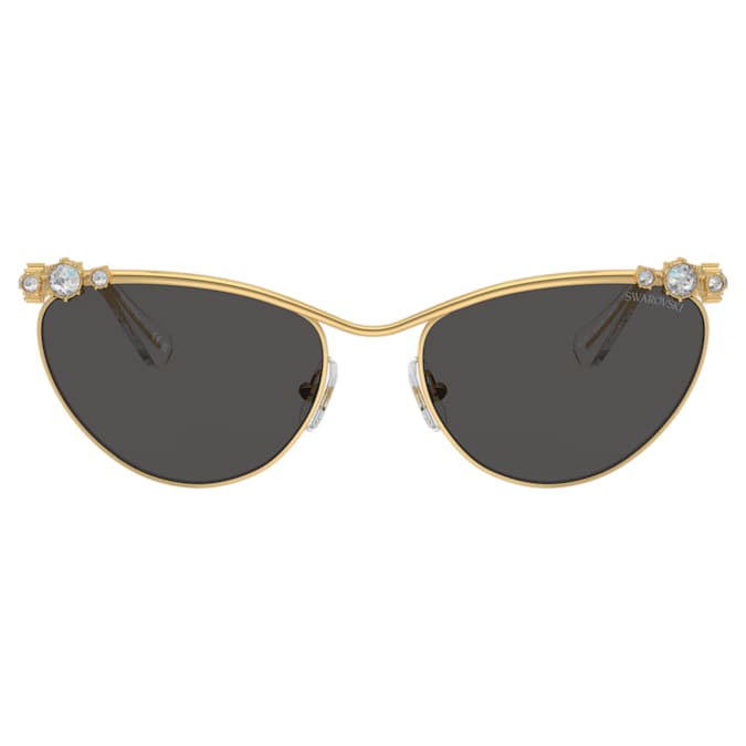 These eye-catching sunglasses are inspired by Swarovski’s Constella family and combine classic elegance with extraordinary shine. Prong-set clear crystals in a variety of sizes adorn curved gold-tone metal temples, while the dark gray lenses are placed in a full-rim frame. A striking way to add extra glamour to your everyday look.