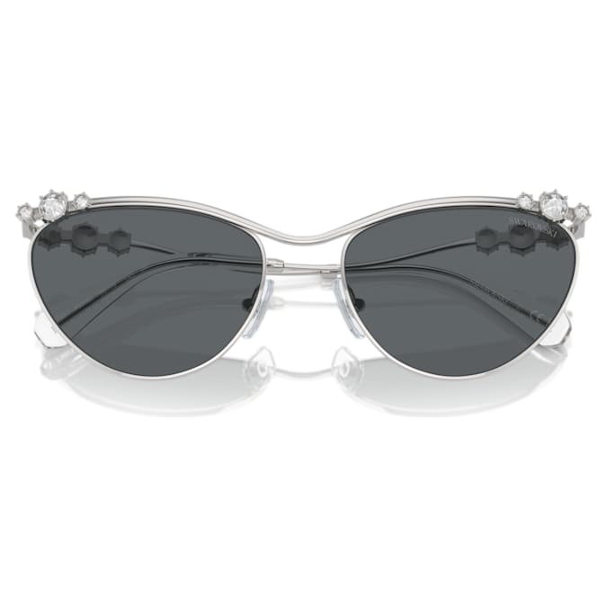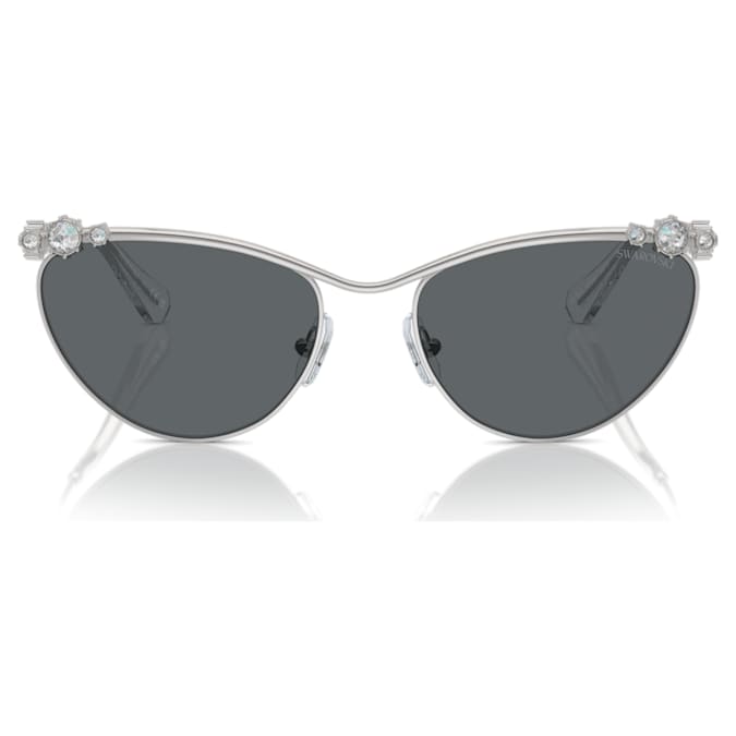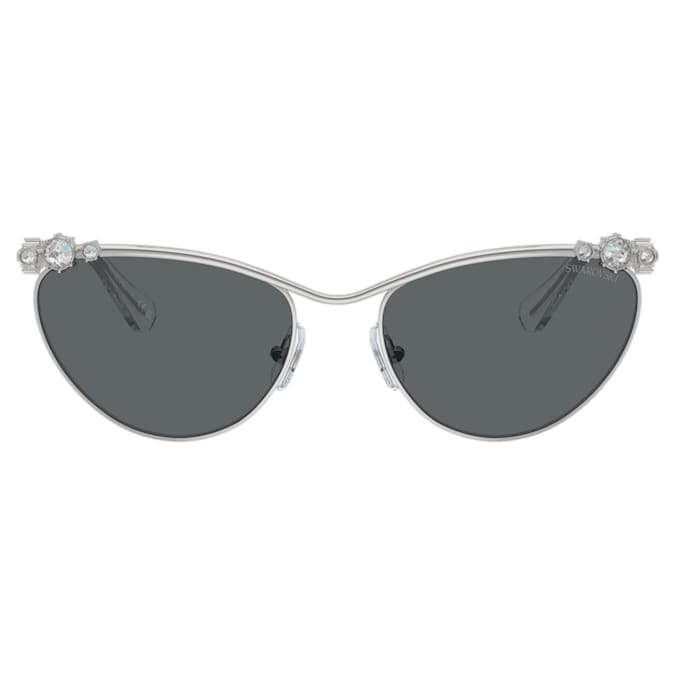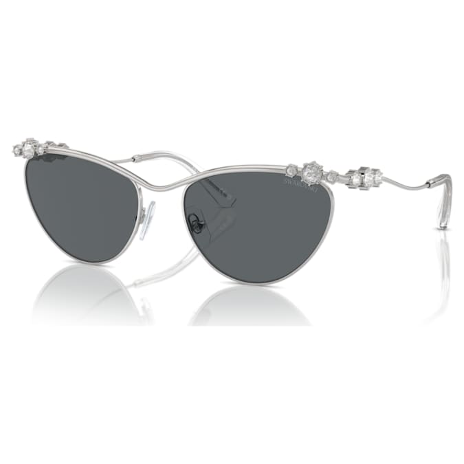 These eye-catching sunglasses are inspired by Swarovski’s Constella family and combine classic elegance with extraordinary shine. Prong-set clear crystals in a variety of sizes adorn curved silver-tone metal temples, while the dark gray lenses are placed in a semi-rim frame. A striking way to add a touch of glamour to your everyday look.