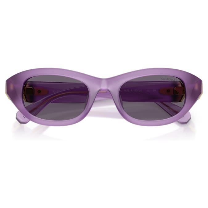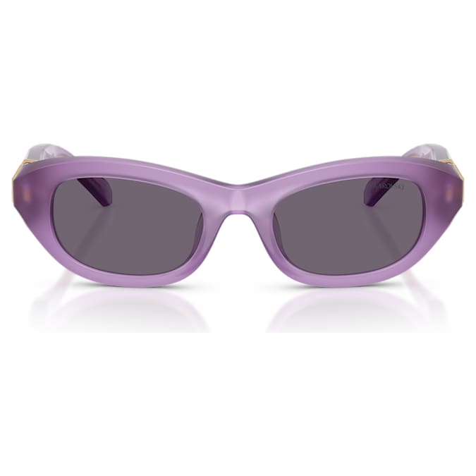 This colorful pair of sunglasses combines innovation with signature Swarovski style. Inspired by the Millenia jewelry family, the lilac frames feature an exclusive hinge on each side, set with two octagonal crystals in a violet shade. The solid purple lenses are then presented in a sleek pillow shape for ultra-modern glamour.