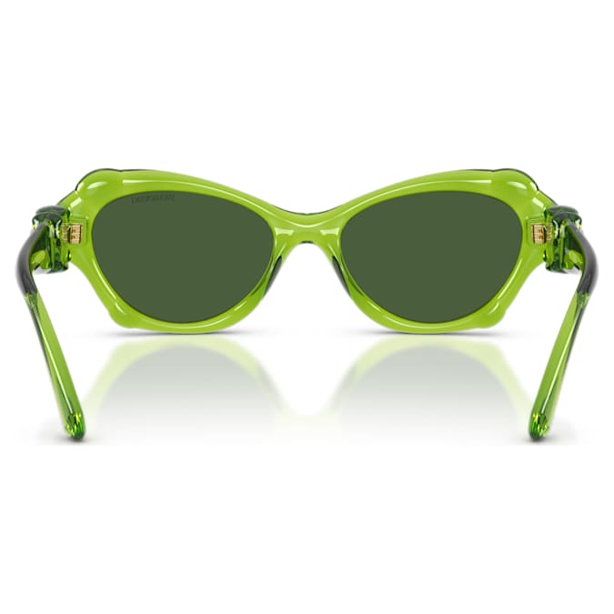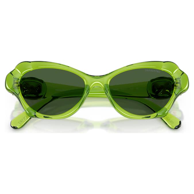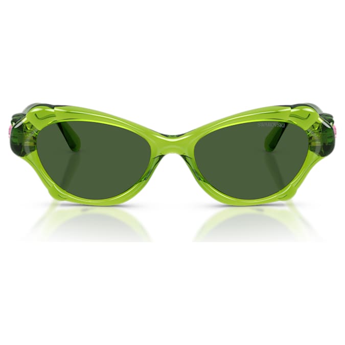 Face each day with the joyful styling of these colorful Swarovski sunglasses. Just like the shimmering bangle from the Dulcis jewelry family, the pillow-shape frames are presented in transparent pink, with a green octagonal crystal set on each temple. The modern look is completed with lenses in dark gray. Wear these pop luxury sunglasses alone or get playful by matching them with a selection of Dulcis jewelry pieces.