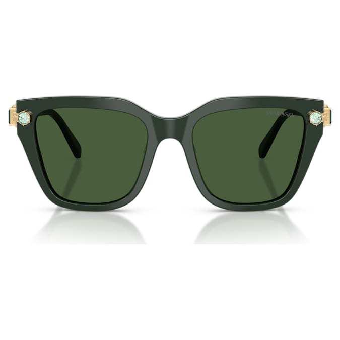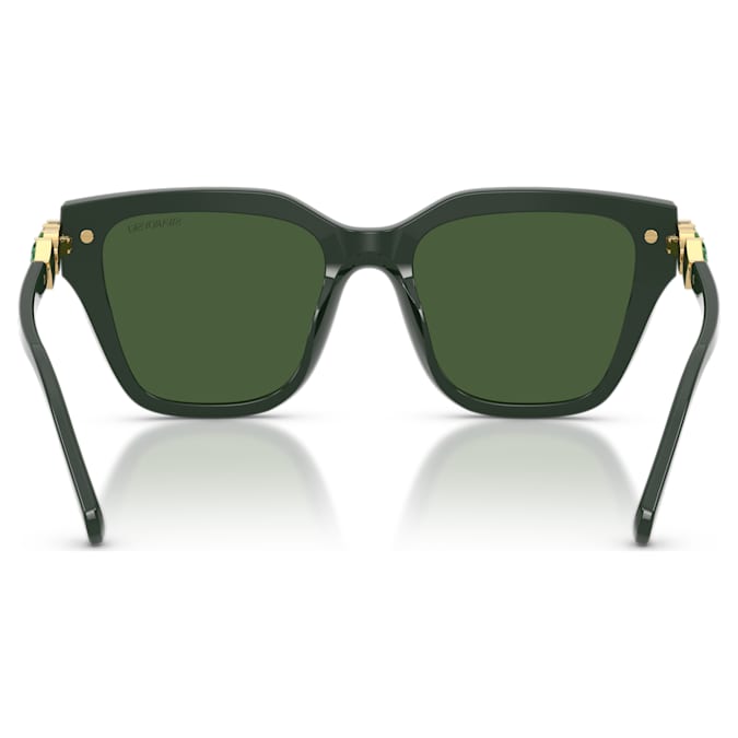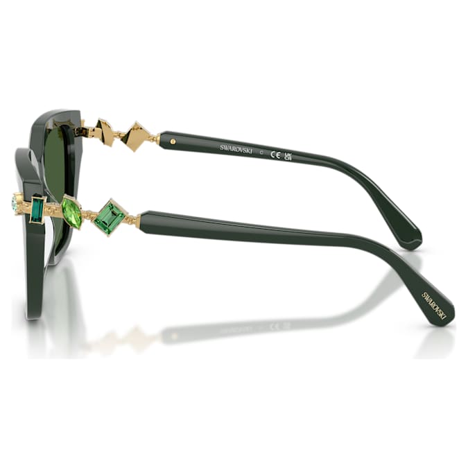 Make a statement in these large Swarovski sunglasses, inspired by the Gema jewelry family. The green frames are matched by solid green lenses, and then brought to life by a mix of crystals on each temple, all presented in a variety of green shades and shapes. A bold choice on their own, or even more vibrant when worn alongside your favorite Gema jewelry pieces.
