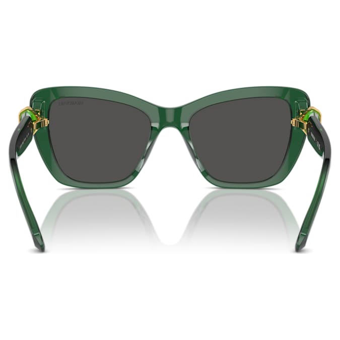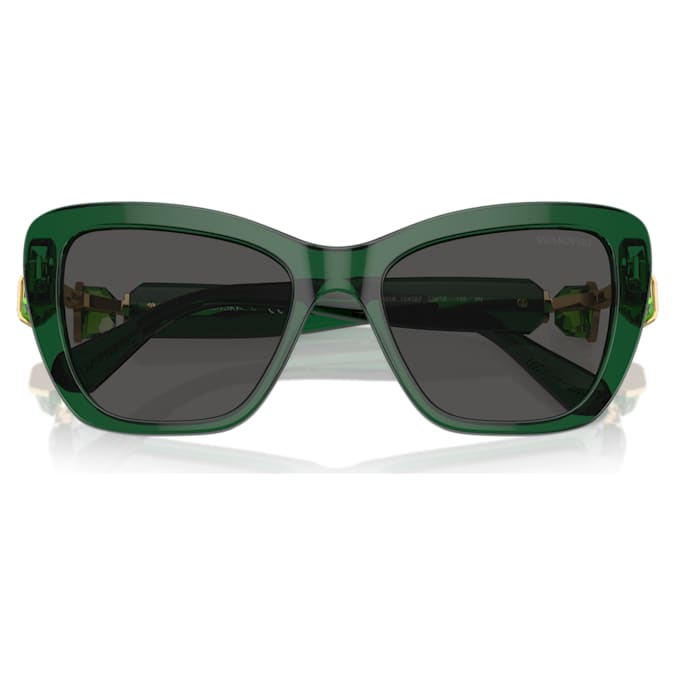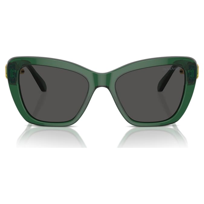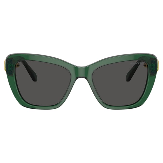 Inspired by our bold Lucent family, these square sunglasses epitomize statement chic. The frames are crafted from green acetate, featuring gray lenses and hinged octagon-cut green crystals on each temple. Gold-tone accents around the stones amplify the luxury. Add this classic look to your wardrobe and face the day in style.
