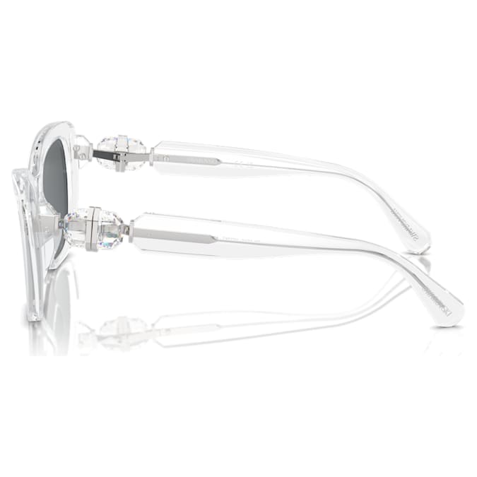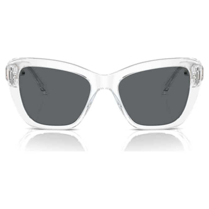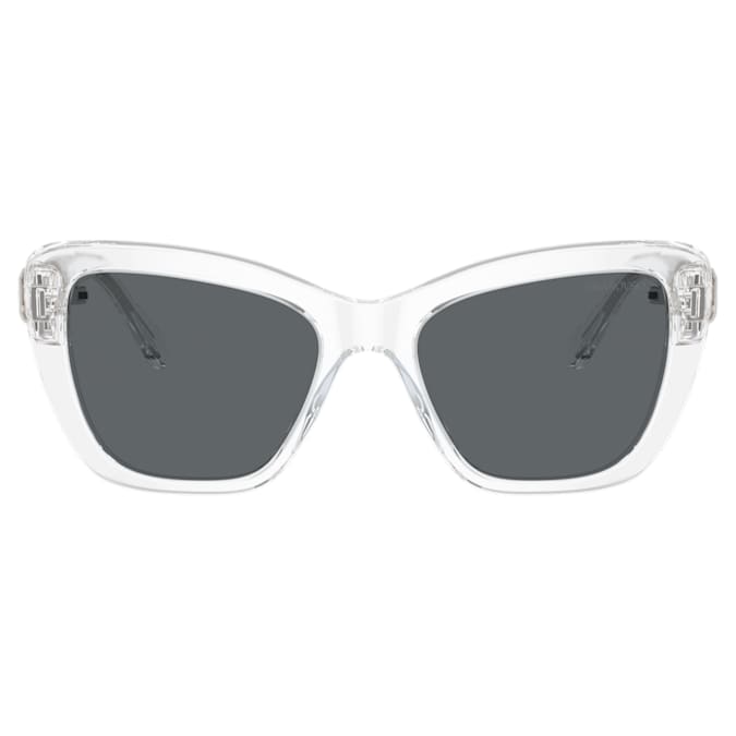 Inspired by our bold Lucent family, these square sunglasses epitomize statement chic. The frames are crafted from transparent acetate, featuring gray lenses and hinged octagon-cut clear crystals on each temple. Light metallic accents around the stones amplify the luxury. Add this classic look to your wardrobe and face the day in style.