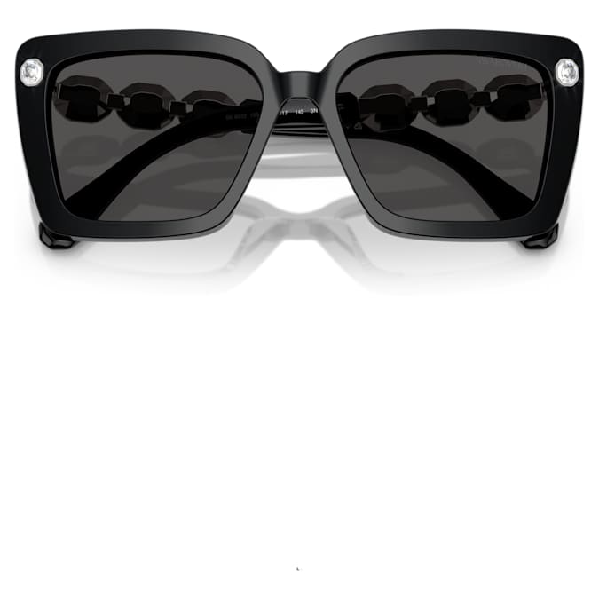 Make a statement with your style thanks to these charismatic Swarovski sunglasses. Inspired by our iconic Millenia family, the retro square frames are crafted from black acetate with matching solid black lenses. On each temple, three clear crystals are placed within a refined metallic bezel setting to form Swarovski’s signature octagon shape. A confidently chic look that epitomizes pop luxury.