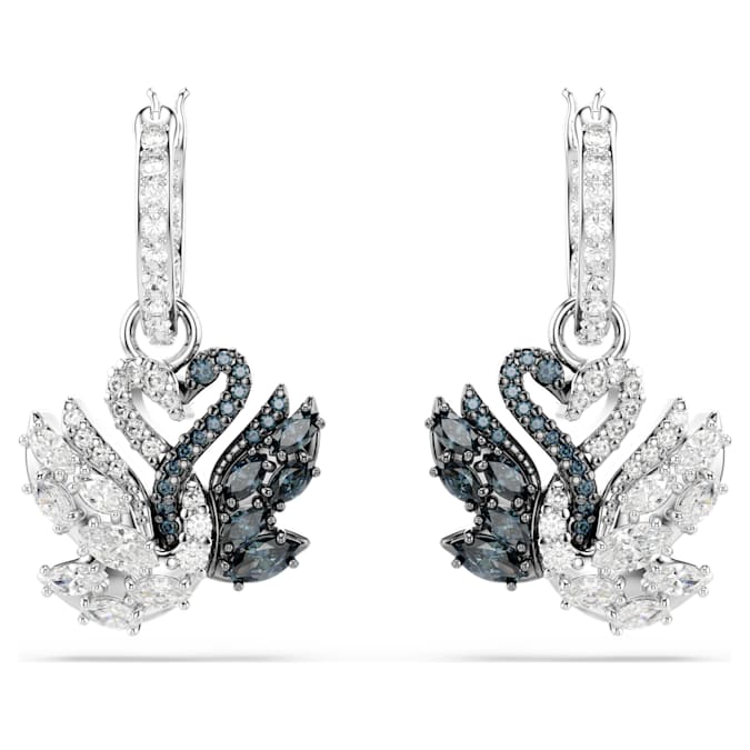 Beauty takes flight in these emblematic pierced earrings, crafted in tribute to Swarovski’s iconic swan logo. Hanging from delicate pavé hoops, each piece features two intertwined swans, in rhodium and ruthenium plating, with an all-over decoration of black and white Swarovski Zirconia in round and marquise cuts. Add these revered silhouettes to your style for a pure touch of elegance.