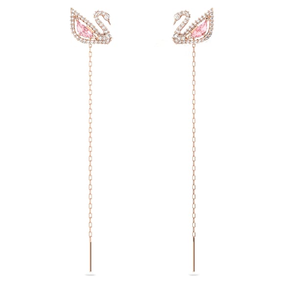 Swan drop earrings Swan, Pink, Rose gold-tone plated