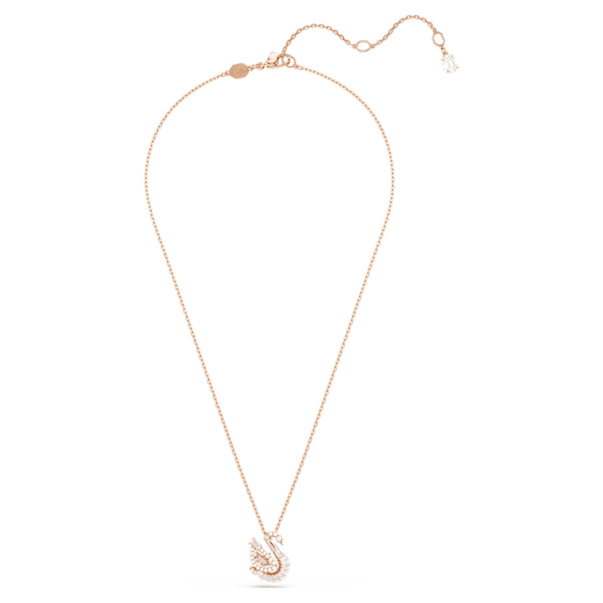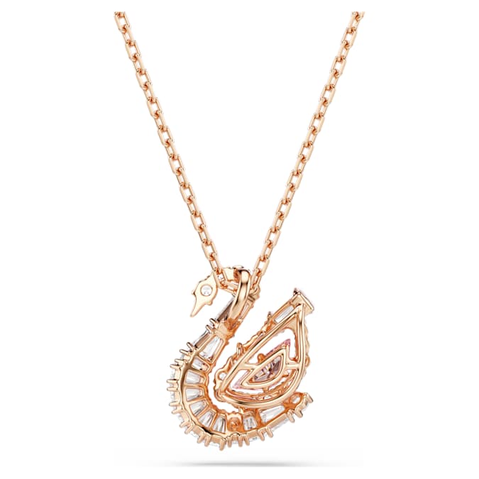 This pendant conveys the graceful movement of Swarovski’s iconic swan. Suspended from a rose gold-tone plated chain, the central motif reveals an elegant silhouette, adorned in clear Swarovski Zirconia and with a pink dancing stone in a swan body cut. This radiant detail creates an endless motion of color and light, and will keep your style shining at every moment.