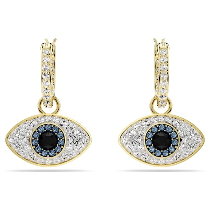 Tune into your spiritual side with these Symbolica earrings. Suspended from classic pavé hoops, the domed evil eye motifs are adorned with clear, blue, and black pavé. A play on the traditional talisman symbol, these earrings will infuse any outfit with a touch of mystical glamour.