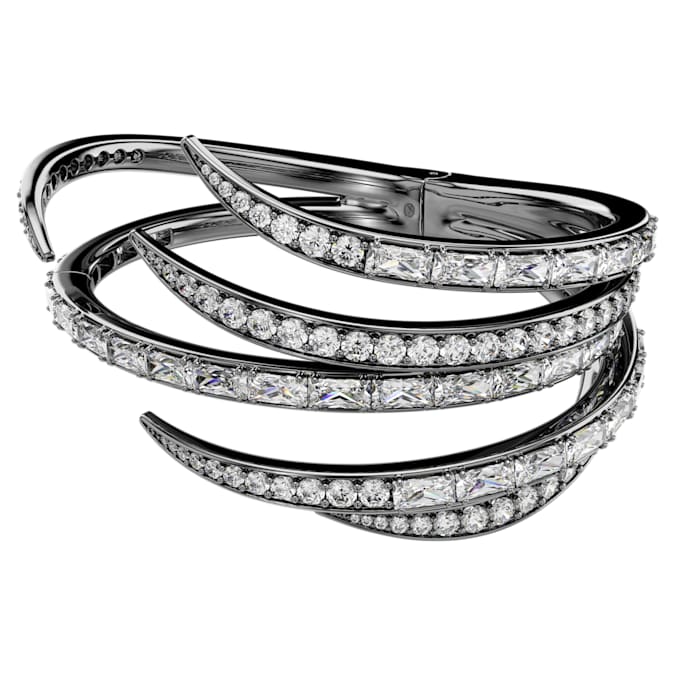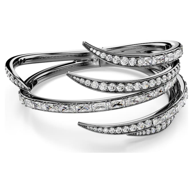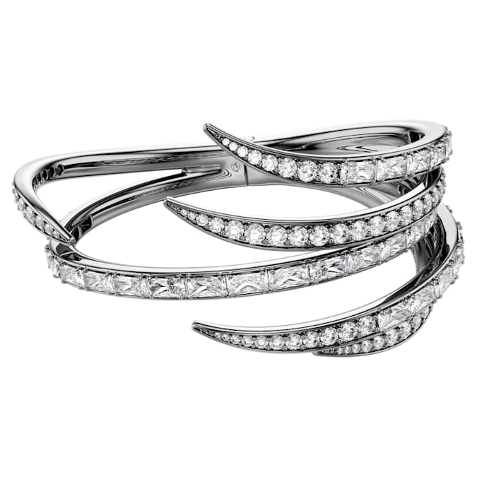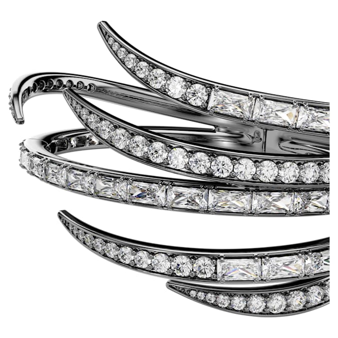The Vienna Collection celebrates 130 years of creativity and savoir-faire at Swarovski. Honoring that heritage, this ruthenium plated bangle is inspired by the graceful wings of the emblematic swan. Each strand is adorned in various cuts of crystals and Swarovski Zirconia, creating light-catching radiance from every angle. A beautiful statement piece to convey sophistication, this bangle is a wondrous tribute to Swarovski’s iconic mastery of light. Wear it together with the matching choker to maximize the bold effect.