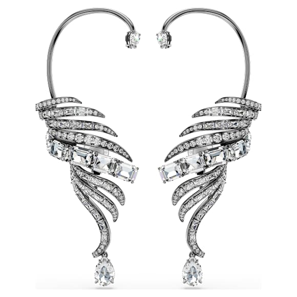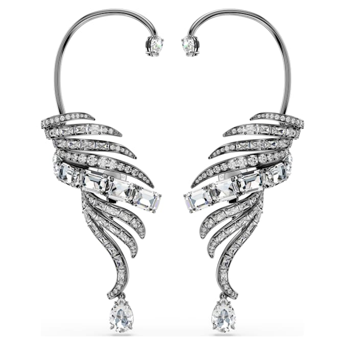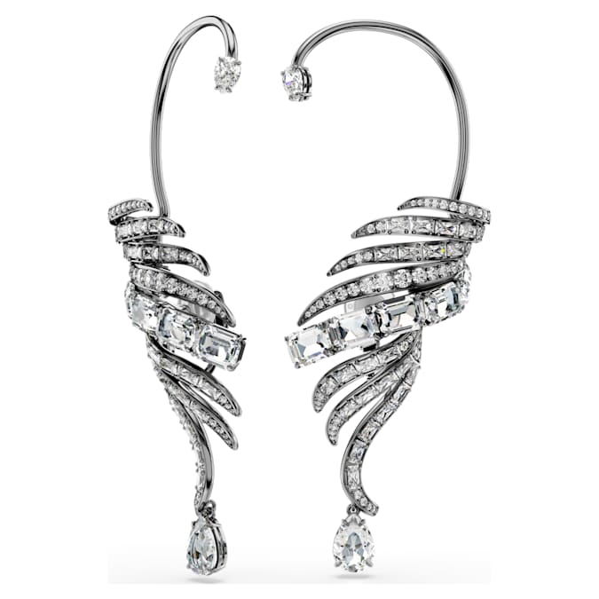 The Vienna Collection celebrates 130 years of creativity and savoir-faire at Swarovski. Honoring that heritage, these ruthenium plated ear cuffs evoke the graceful feathers of a swan. Each clip earring is decorated in clear crystals and Swarovski Zirconia, presented with an elegant mix of cuts in a channel setting. Two additional crystals are placed above the ear, with a further two hanging beneath. Conveying a sense of movement and sophistication, these ear cuffs are a wondrous tribute to Swarovski’s iconic mastery of light.