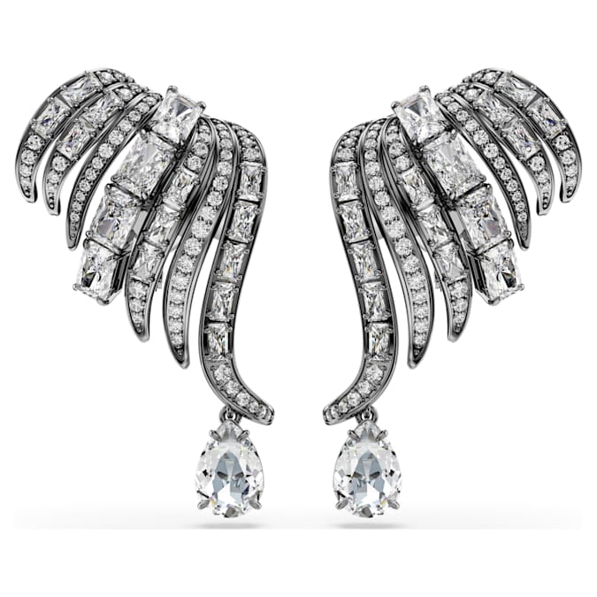 The Vienna Collection celebrates 130 years of creativity and savoir-faire at Swarovski. Honoring that heritage, these ruthenium plated ear cuffs evoke the graceful feathers of a swan. Each piece is decorated in clear crystals and Swarovski Zirconia, presented with an elegant mix of cuts in a channel setting. Two pear-shape crystals also hang beneath for extra radiance. Conveying a sense of movement and sophistication, these ear cuffs are a wondrous tribute to Swarovski’s iconic mastery of light.