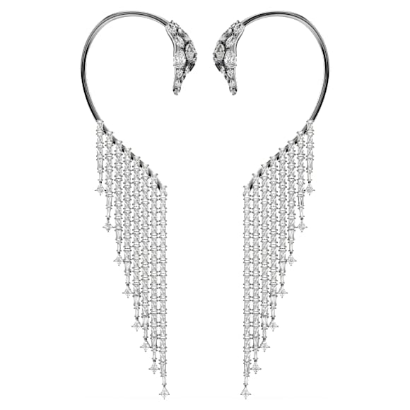 The Vienna Collection celebrates 130 years of creativity and savoir-faire at Swarovski. Honoring that heritage, these ruthenium plated ear cuffs evoke the graceful qualities of the emblematic swan. Each piece is decorated in clear crystals and Swarovski Zirconia, with a fringe-like effect that captures the delicate nature of feathers. Conveying a beautiful sense of movement and sophistication, these ear cuffs are a wondrous tribute to Swarovski’s iconic mastery of light.