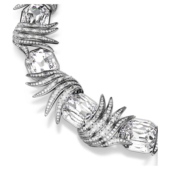 The Vienna Collection celebrates 130 years of creativity and savoir-faire at Swarovski. Honoring that heritage, this ruthenium plated necklace evokes the graceful qualities of the emblematic swan, with a full-surround of octagon-cut crystals and feather-like wings. Various cuts of crystals and Swarovski Zirconia are used to elevate the radiance, while the extender at the back allows for an adjustable fit. Conveying a beautiful sense of movement and sophistication, this necklace is a wondrous tribute to Swarovski’s iconic mastery of light.