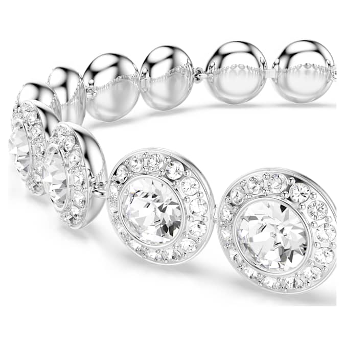 Wrap your wrist in light with this luminous Una Angelic bracelet. The rhodium plated design features individual links, each set with a brilliant central crystal and a halo of smaller round-cut crystals. An ethereally elegant choice that can be paired with matching pieces from the same family.